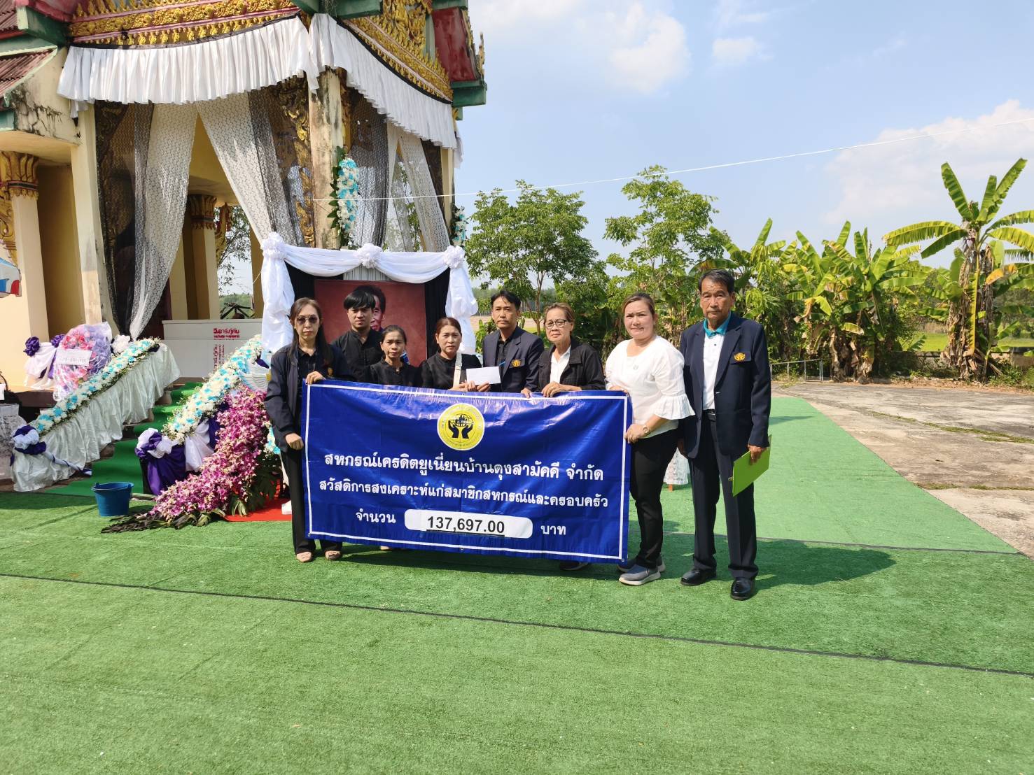 พร้อมกับได้มอบเงินสวัสดิการสงเคราะห์สมาชิกสหกรณ์และครอบครัว ให้แก่ทายาทของสมาชิกของผู้เสียชีวิต จำนวนเงินทั้งสิ้น 137,697.00 บาท ณ วัดสามัคคีธรม หมู่ที่ 15 บ้าปอพาน ต.บ้านดุง อ.บ้านดุง จ.อุดรธานี
